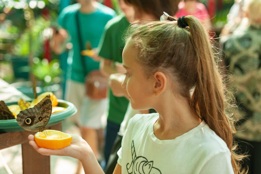 1. Czy mogę samemu nakarmić motyla w Waszej motylarni? Dla bezpieczeństwa naszych owadów i utrzymania ich prawidłowej diety prosimy, by goście nie przynosili własnego jedzenia ani nie podawali go motylom na palcach. Nasze karmniki są stale pełne, więc z pewnością zdążysz przyjrzeć się ich posiłkom z bliska!